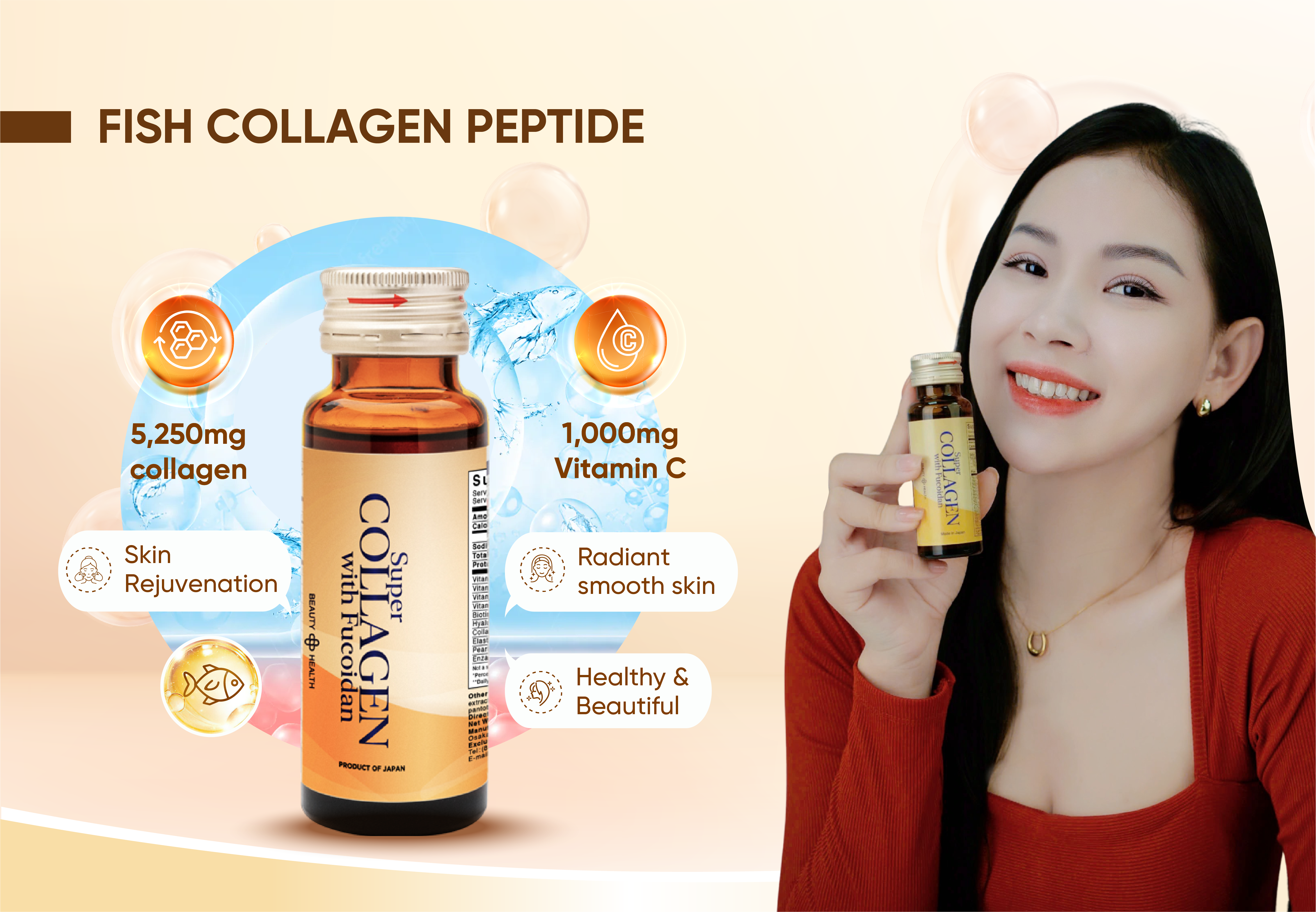 Younger and healthier than actual age by drinking Fish Collagen daily!