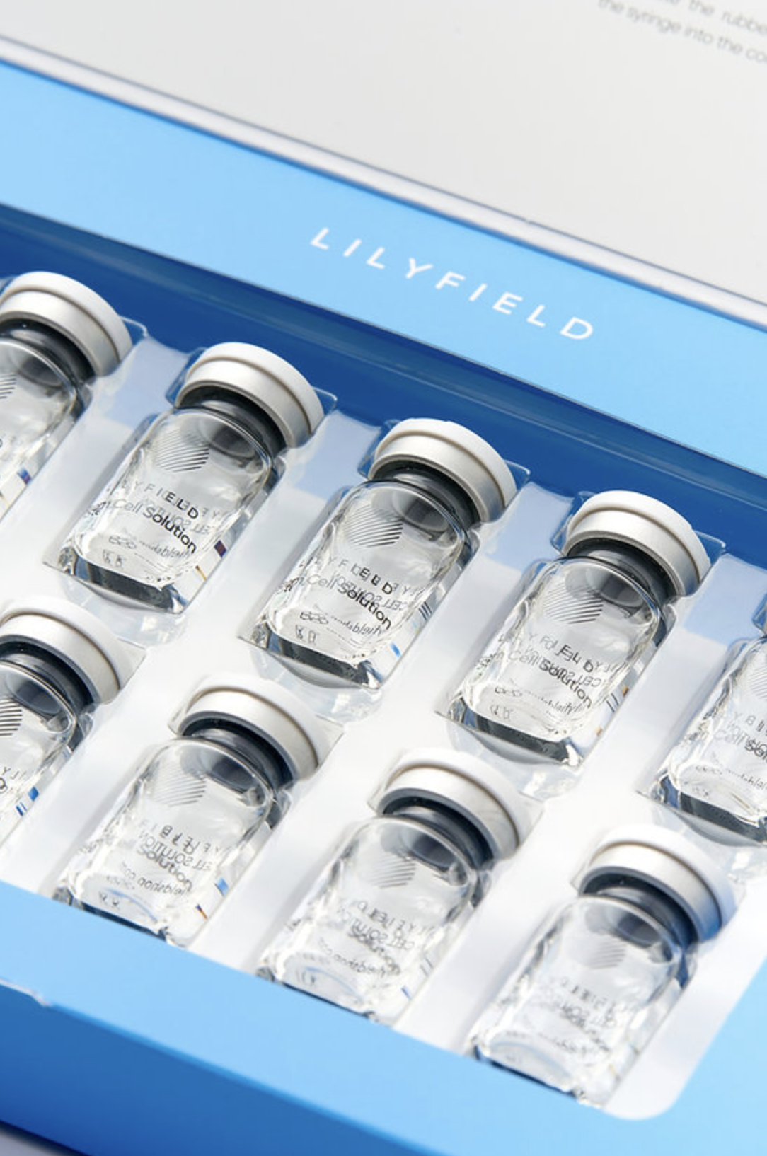 - Xịt 3 giọt ampoule vào lòng bàn tay, chấm 5 điểm trên mặt (trán, má, mũi, cằm)