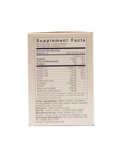 - Hydrolized Elastin 15mg - Helps the skin become smooth and elastic, reduces wrinkles
